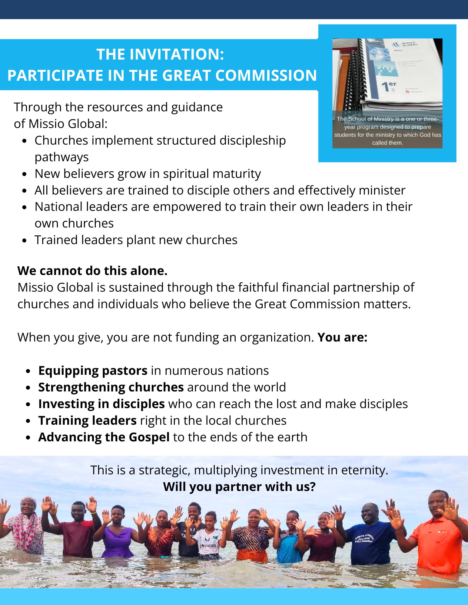 PRAY - There are a couple very practical ways that you can pray for the growing impact of Missio Global.